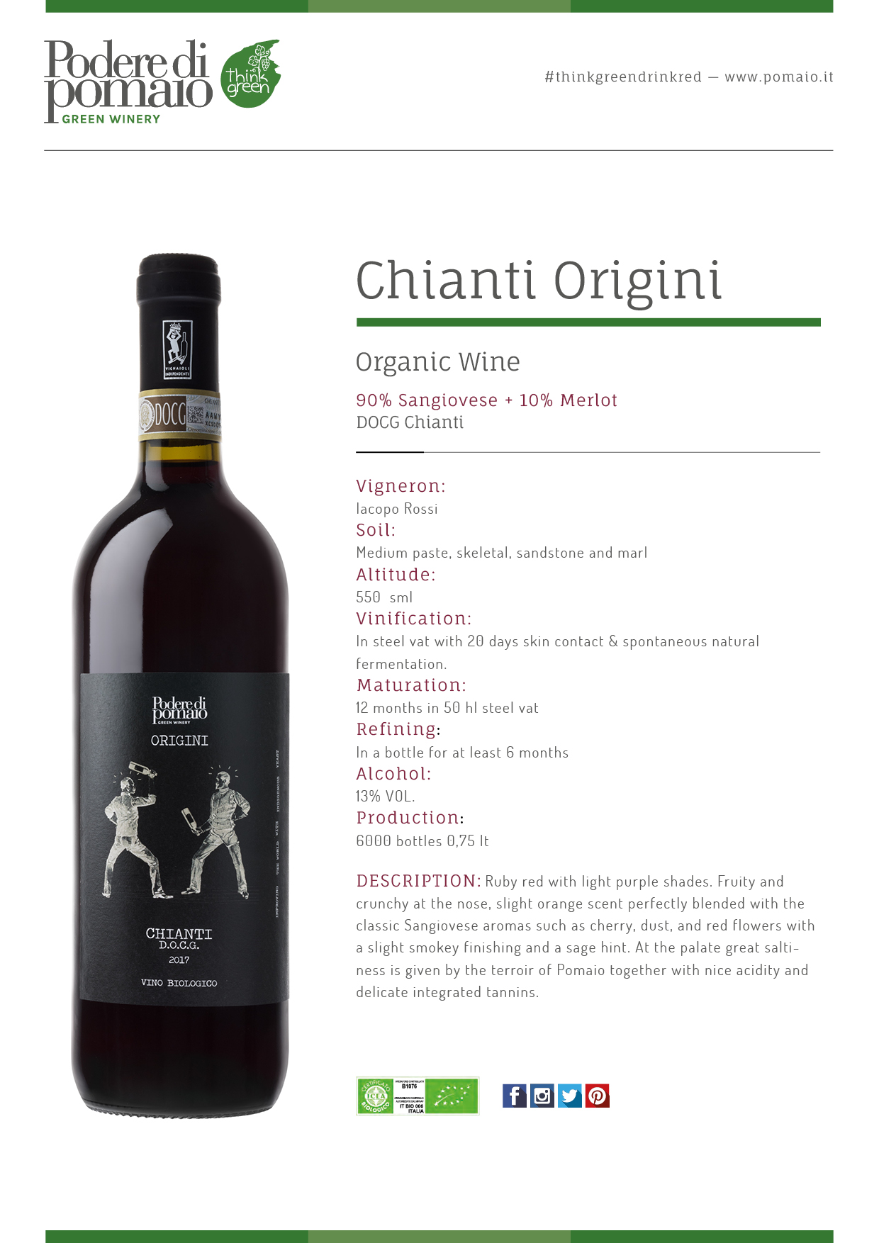 Pomaio Origini is a traditional wine with a contemporary taste. Vertical and elegant wine, quite fresh and with really delicate tannins. Fine notes of red-berries and traditional minerality of Pomaio’s terroir.
